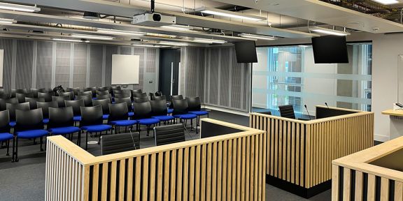 The audio visual system in both lecture theatres is designed with academics and students in mind. Ceiling mounted NEC projection systems bring large scale content to the space, and a combination of JBL and Biamp speakers enable delegates to hear clearly, regardless of where they are seated.