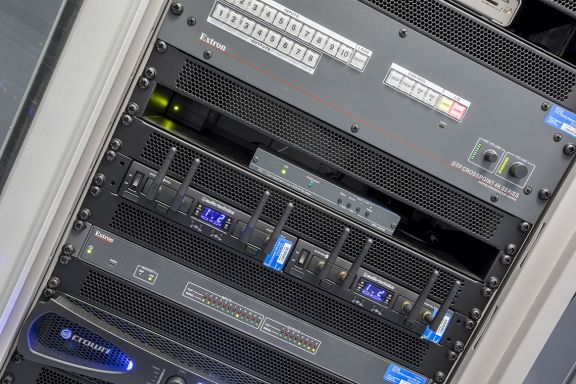 To improve audio quality, Pure AV introduced new radio mics. An acoustic survey of the room ensured speaker placement and audio levels were optimised and the introduction of a Extron DMP 128 DSP provides the on-site audio visual team with additional audio control; enabling program and microphone audio to be distributed separately and effectively, for an enhanced listening experience.